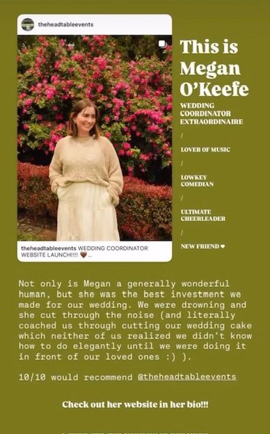 "I am incredibly grateful for Megan and her amazing support during not only the wedding planning, but the big day as well! Megan took part in everything from the first dance, to managing my schedule during the day, to keeping me sane even at the most stressful of times. As my best friend for years, she took charge of every detail, relieving my stress and keeping everything organized.